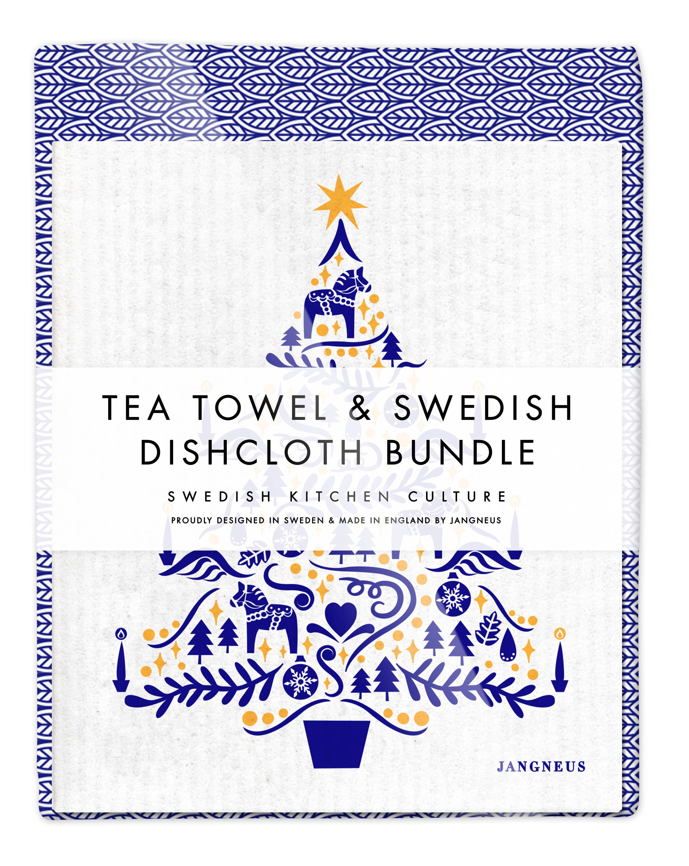 Swedish Dishcloth & Tea Towel Bundle: Blue Scandi Tree