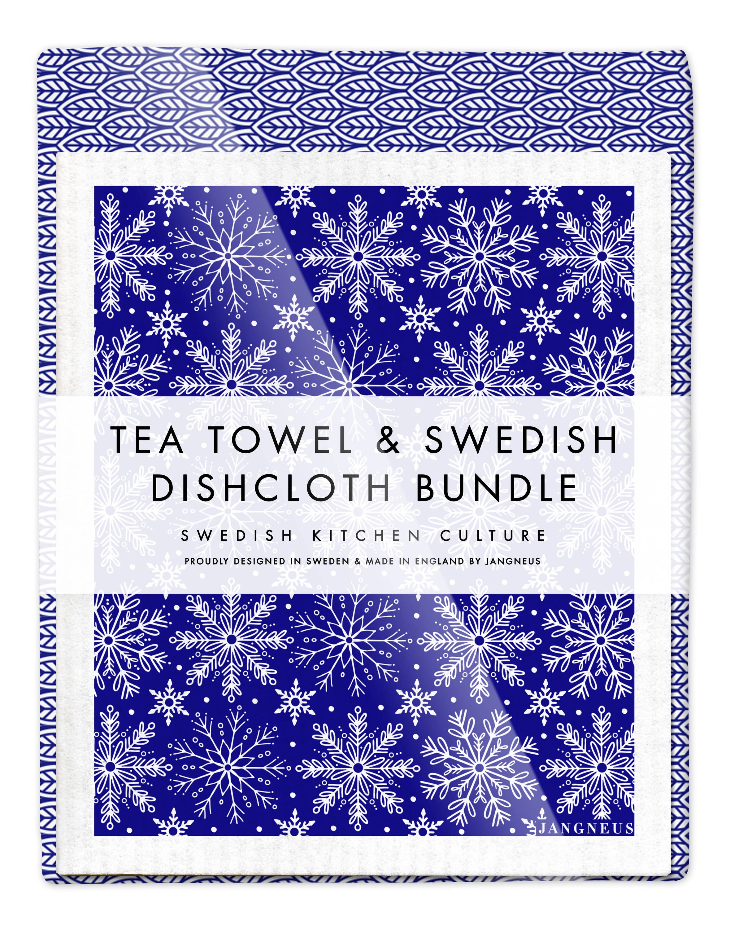 Swedish Dishcloth & Tea Towel Bundle: Blue Snowflakes