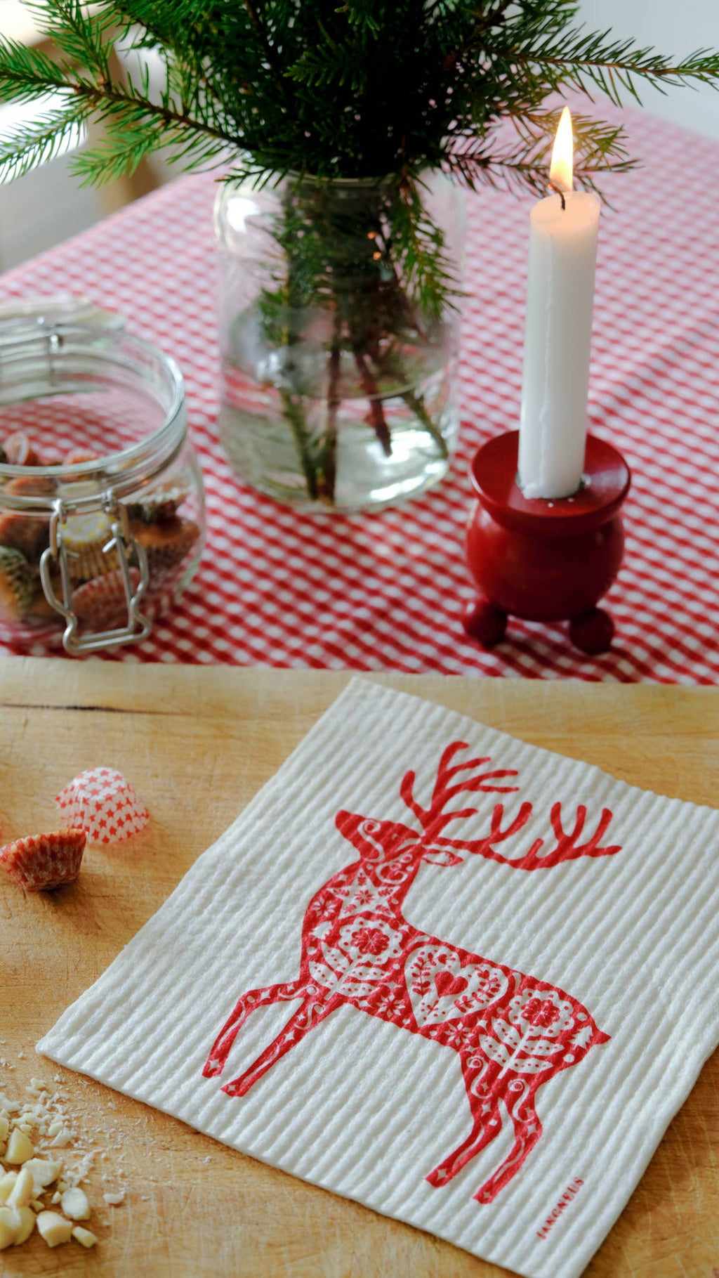 Swedish Dishcloth: Red Scandi Christmas Tree