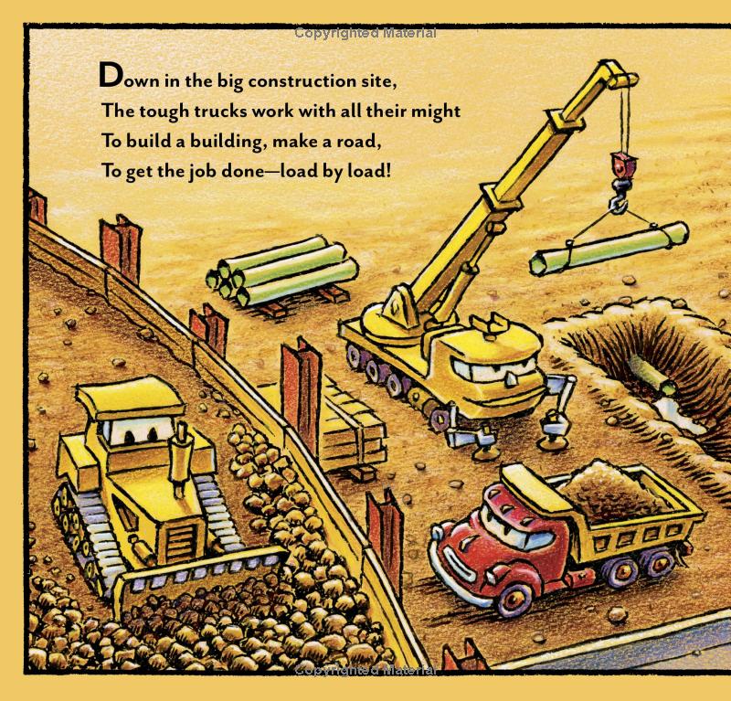Get to know the different machines of the construction crew as they finish a hard day's work and settle in for the night! Vibrant illustrations and gentle rhyming text will make this construction book for kids a bedtime favorite.